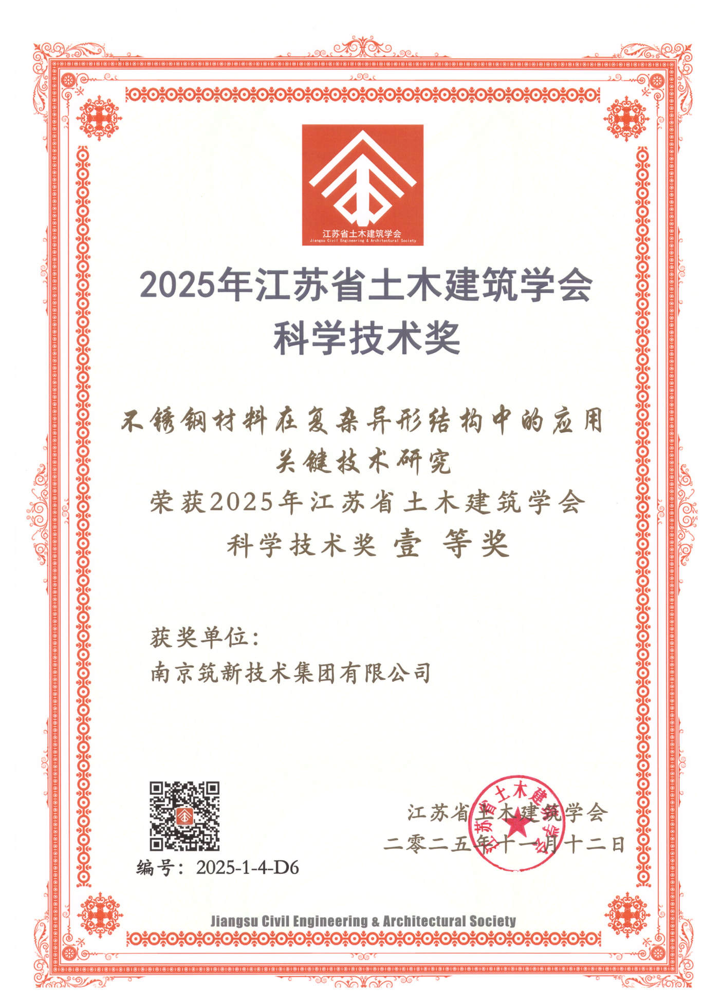 人才梯队闪耀:王兆东董事长获评东南大学年度青年校友;常务副总经理贾连军荣获 “江苏省钢结构行业青年科技英才”;副总经理员浩阳在“不锈钢材料在复杂异形结构中的应用关键技术研究”荣获省个人壹等奖。
