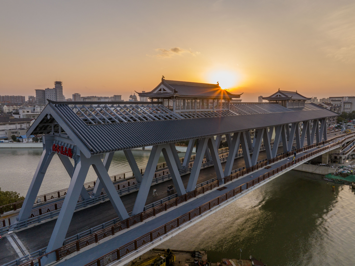 飞虹卧波,连接古今。上官河上,北水关大桥以一道现代钢桁架虹桥,诗意贯通两岸,矗立于城市天心之地。