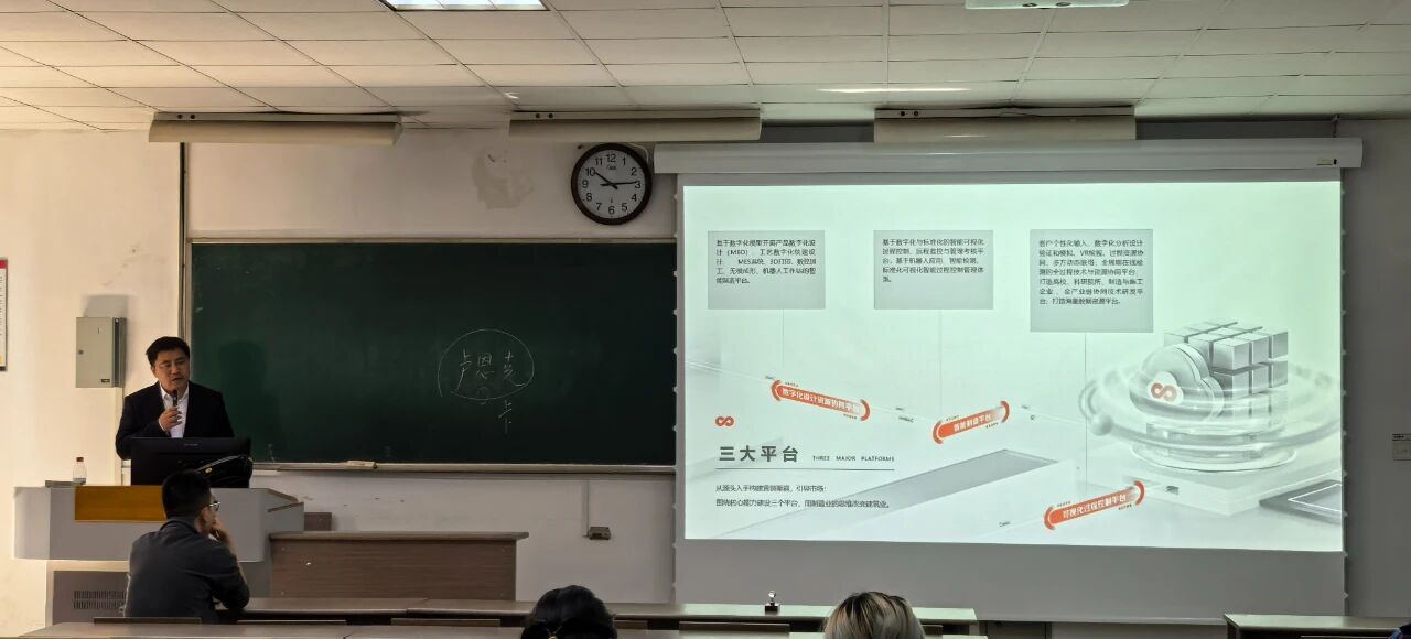 课堂上,王兆东董事长详细阐述了筑新的核心竞争力——依托复杂曲面金属核心技术,以“五化”(个性化、参数化、标准化、智能化、模块化)为路径,推动金属建筑从制造走向“智造”。他还分享了筑新在航空航天、高铁等高端领域的应用突破,展现出材料科学的广阔前景。